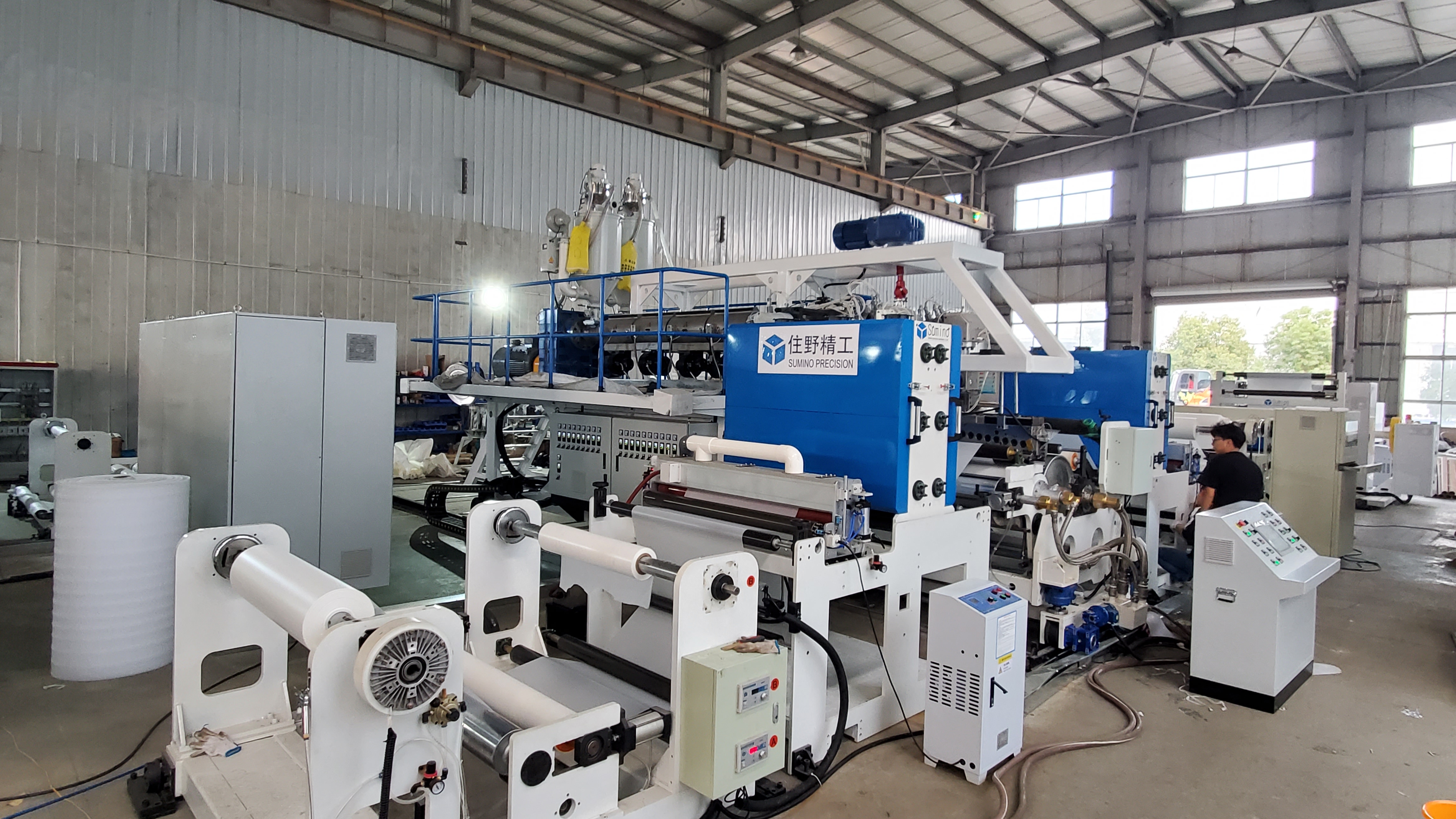 經過將PE顆粒在擠出機裏麵熔融加熱成為(wéi)熔體,之後經過擠出機模頭流出,經過基材外表時冷凝(níng)熱壓,將兩(liǎng)層資料(liào)結合在一起,以提高基材的抗拉(lā)強度、氣密性和防潮性的塑(sù)料機(jī)械設備(bèi),職業又稱擠出複合(hé)機、流延機、擠出流延機(jī)、流延(yán)複合機、塗膜機等。