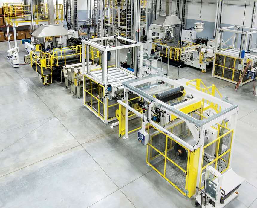 利用(yòng)流延(yán)成(chéng)膜法纏繞薄膜(mó),不僅較吹塑薄膜法生產纏繞薄(báo)膜具(jù)有生產效率(lǜ)高,產品厚度均勻性佳,透明(míng)性高等優(yōu)點,而且可以減少增黏劑(jì)的用量(采用留流延法生產家用(yòng)纏繞薄膜時,甚(shèn)至不加增黏劑),有利於降低產品(pǐn)生產成本,是(shì)目前(qián)纏繞薄膜生產中應用最多的工藝。