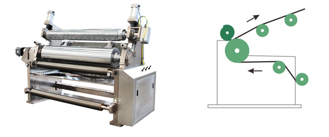 逗號輥塗布的特點是刃刮刀和輥刮刀的組合。膠液(yè)厚度(dù)影響比刃刮(guā)刀小,塗層厚度容易調節,能夠塗布高粘度膠液。幅寬較大,能橫(héng)向調(diào)節。