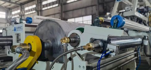 三合一淋膜機,機器寬度2200mm,淋膜基材寬度1800mm,速度高於100m/min,全自動在(zài)線控製。
