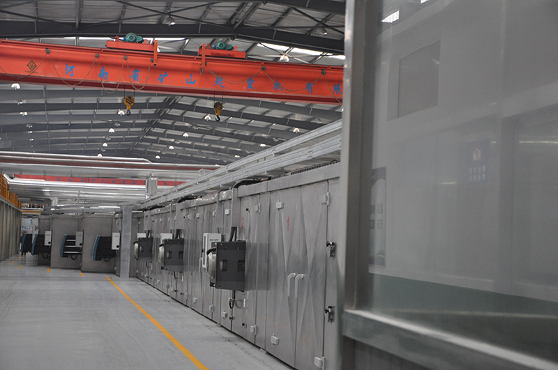 石頭紙的雙向拉(lā)伸生(shēng)產線,涉及石頭紙的加(jiā)工裝置。包括自前而後依次排列的三層(céng)擠出機、壓花成型裝置、前測厚裝(zhuāng)置、縱向(xiàng)拉伸裝置、橫向拉伸裝置、後測厚裝置、冷卻修邊引取裝置、第一張力卷收裝(zhuāng)置及(jí)第二張力卷收裝置,壓花成型裝置與三層擠出機承接,前測厚裝置與壓花成型裝置承接,縱向(xiàng)拉伸裝置與前測厚裝置(zhì)承接,橫向拉伸裝(zhuāng)置與縱向拉伸裝置承接,後測厚裝置與橫向拉伸裝置承接,冷卻(què)修邊引取裝置與後測厚(hòu)裝置承(chéng)接,第一張力卷收裝置與冷卻修邊引取裝置承接,第(dì)二張力(lì)卷收(shōu)裝置(zhì)與第一張力卷收裝置承接。使石頭紙在縱向拉伸後(hòu)接著進行橫向拉伸(shēn),致使石頭紙的厚度變薄,利於減輕紙張(zhāng)的重(chóng)量,提高紙張質量,降低製造成本。BOPP-BOPE-BOPLA-BOPBT雙向拉伸設備