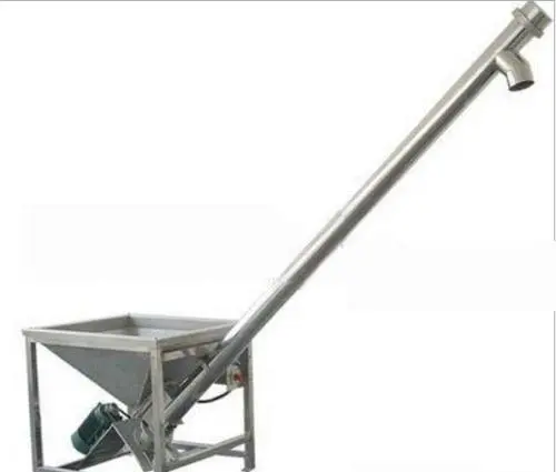 螺旋上料裝置,也稱為彈簧上(shàng)料裝置。它是把一根螺(luó)旋彈簧裝在橡膠管內,彈(dàn)簧直接由電動(dòng)機驅動,在橡膠管(guǎn)內高速旋轉(zhuǎn)。當(dāng)料鬥需要上料時,起動電動機帶動彈簧旋轉,原料被撣簧螺旋帶動上升,換膠管上端對準料鬥處開有一排料(liào)口,上並至排料口處的原料(liào)被彈簧旋轉的(de)離心力拋出(chū)料口,進入料鬥(dòu)。此種上料裝置結構簡單,操作和維修都很方便,適(shì)合於粒料和粉料的輸送。