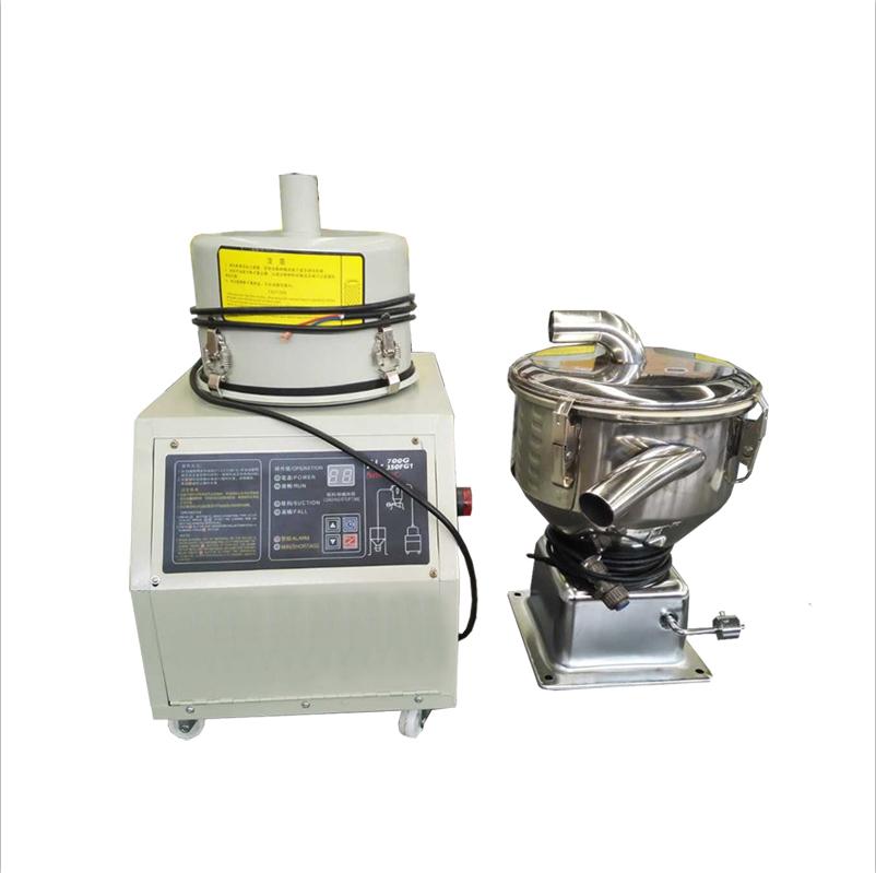 主(zhǔ)要由風機、吸氣管、儲料倉、吸料管、過濾(lǜ)網、電控箱等零部件組成。當料鬥需要(yào)上料時,風(fēng)機起動(dòng),通過吸氣管和過濾(lǜ)網,使中間儲(chǔ)料倉內形成負壓;與此同時,與中間儲料倉及原(yuán)料儲箱相連接的(de)吸料管8把原料儲箱(xiāng)中的(de)原料吸人中間儲料倉內(nèi),當吸入一定量時,上料繼電器動(dòng)作,風機停止(zhǐ)工作,吸料工作停止,這時排料活門(mén)打開,為擠出機料鬥供料(liào)。