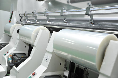 用於生產(chǎn)石頭紙的連續(xù)加工設備,涉及生(shēng)產合成紙類的設備。包括壓(yā)延擠出裝置、吹塑成型(xíng)裝置、薄膜牽引裝置及滾壓(yā)裝置(zhì),壓(yā)延擠出裝(zhuāng)置的末尾的輥輪與吹塑成型裝置末尾端相對,薄膜牽引裝置緊靠吹塑(sù)成型裝置末尾端設置,將(jiāng)從吹塑成型裝置末尾(wěi)端製出的薄膜套在從壓延擠出裝置的末尾的輥輪製出的片體的(de)上下表麵,滾壓裝置設置於壓延擠出裝置的(de)末尾的輥輪與吹塑成型裝置末尾端之間,將所述片體與其上下表麵的所述薄膜滾壓成一體。其有益效果是:具有壓延擠出功能、吹塑成型(xíng)功能和滾壓複合功能,形成(chéng)生產石頭紙板或製作包裝盒之類的石頭紙的連續生產(chǎn)線,一體化程度高。結構緊湊;其可節省操作(zuò)人員,省電;生產速度高。