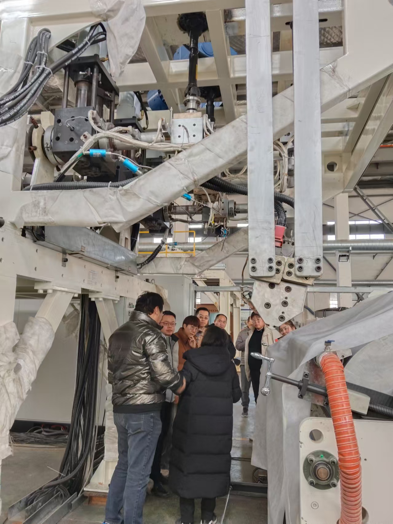 2024年12月24日,中(zhōng)國科學院化學研究所專家一行蒞臨91视频入口重機械工(gōng)業參(cān)觀考察,雙方圍繞拉伸薄膜生產線的技術創新與新材料研發(fā)進行了深入交流。此次訪問進一步加深了科(kē)研機構與企業的合作,為推動薄膜行業技(jì)術革新奠定了堅實(shí)基礎。