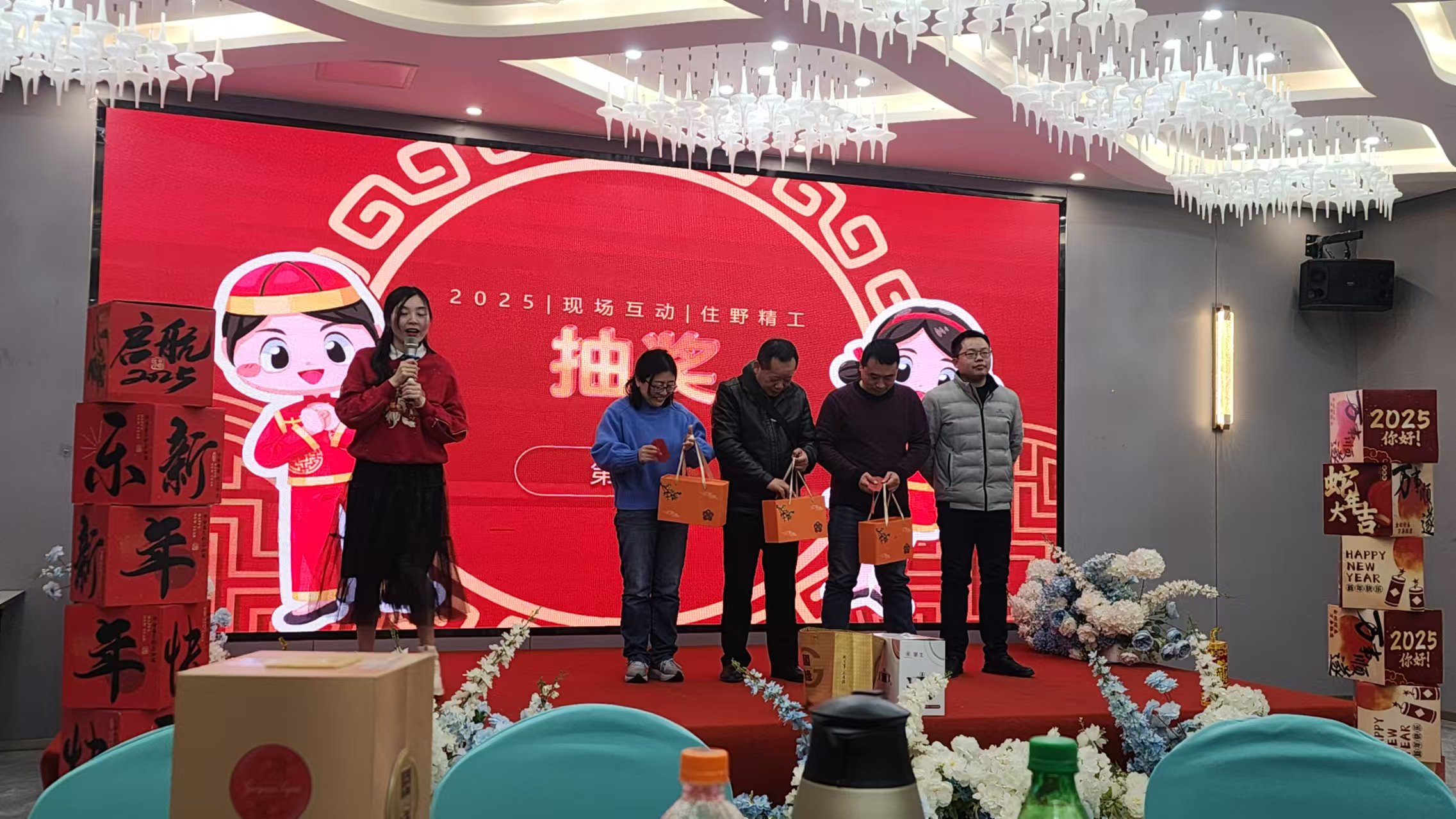 隨後的抽獎(jiǎng)環(huán)節將活動推向高潮。公司準備了實用的生(shēng)活用品和精美禮品作為獎品,還為每一位員工發放紅包,寓意新年紅火。現場歡呼聲、掌聲不斷,員工們笑容(róng)滿麵。