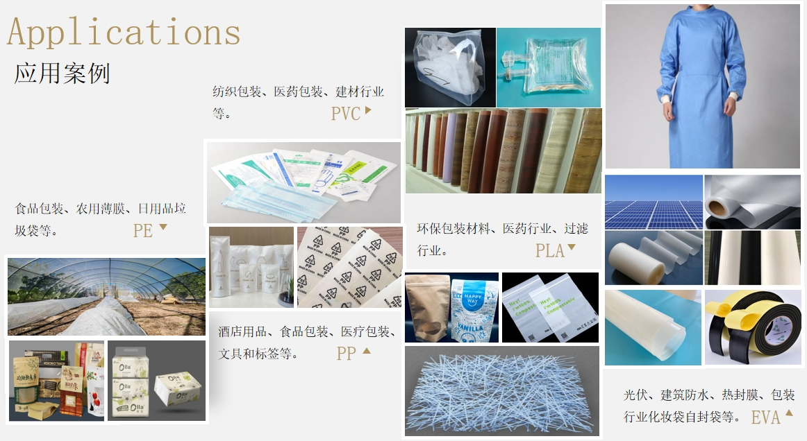 →塑(sù)料包裝/農(nóng)業覆蓋領域/工(gōng)業(yè)保(bǎo)護領域/醫療防護(hù)衛材(cái)/‌新能(néng)源電池和光伏領域‌/3C產品